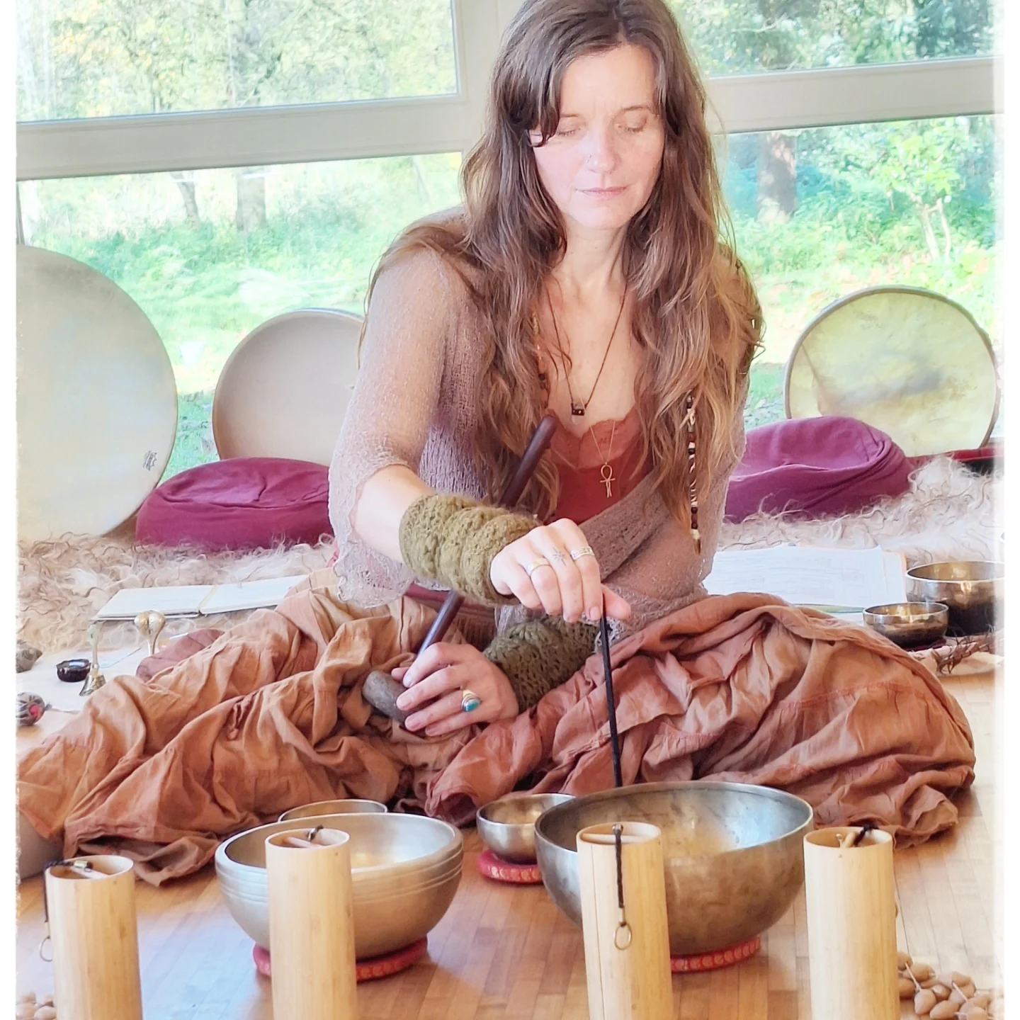 Anna-Gaia: “Lieve Marleen, twee Vrouwenjaarcirkels verder onder jouw hartverwarmende begeleiding zak ik steeds dieper in mijn lijf, mijn bekken. Kan ik voelen, loslaten, vieren wie ik in wezen ben. Dingen aankijken, soms met grote weerstand, te omarmen en vervolgens steeds opnieuw te ontdekken dat achter iedere weerstand een groot verlangen schuilt. Jouw cirkels zijn voor mij soms confronterend, maar altijd transformerend en helend. Een veilige plek waar alles er mag zijn. Uit de schaamte en in het licht. Dan weer de duisternis in om in zachtheid te voelen, te huilen, te verwerken, te omarmen en vervolgens dansend, drummend en zingend te herrijzen. Zoveel wakker geschud. Zoveel herinneringen, diepe verlangens leren kennen en er ook wat mee kunnen doen. Vrijheid, vrij zijn, maar bovenal vrouw-zijn in alle aspecten en dat zijn er veel! Innig dank voor je werk, voor jou Zijn. Liefs, Anna-Gaia“